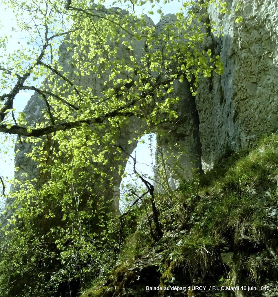 Une mise en jambes de 2 km nous permet d'aborder la montée qui nous mènera jusqu'à la petite route joignant Fleurey à Urcy. Nous traversons un champs de colza pour ensuite contourner par l'ouest le Plain de Suzard. Plus loin, un sentier balisé rose nous invite à faire un crochet vers la "Roche d'Anse", curiosité géologique rappelant le rocher d'Etretat.