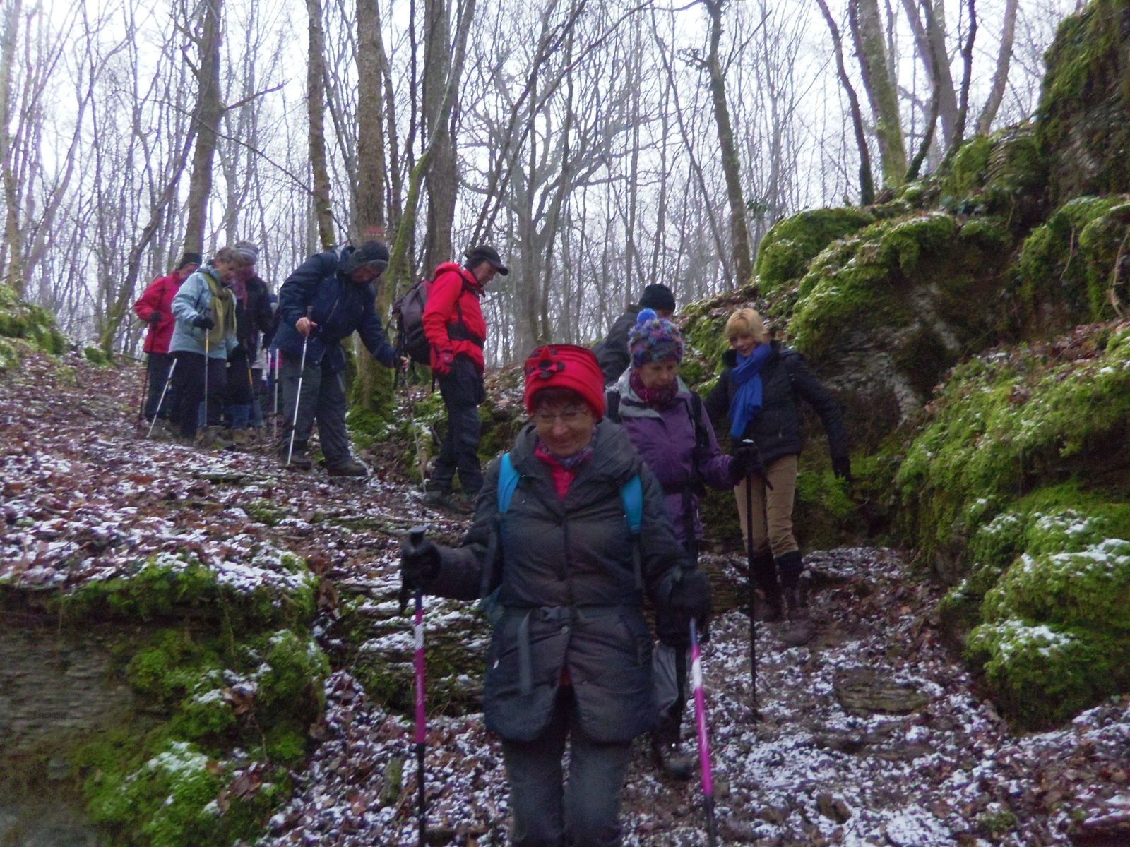 Du Sapin du garde nous nous dirigeons vers la combe Grand Vaux , le froid semble donner des ailes à l'avant garde de notre troupe de 33 marcheurs!