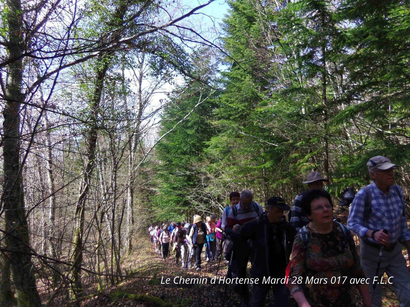 Après notre point de rassemblement le long de l'A38, 44 marcheurs de FLC se sont élancés du bas de la Combe Reubet sur le Chemin d'Hortense. 20° au thermomètre, cette météo printanière est idéale.