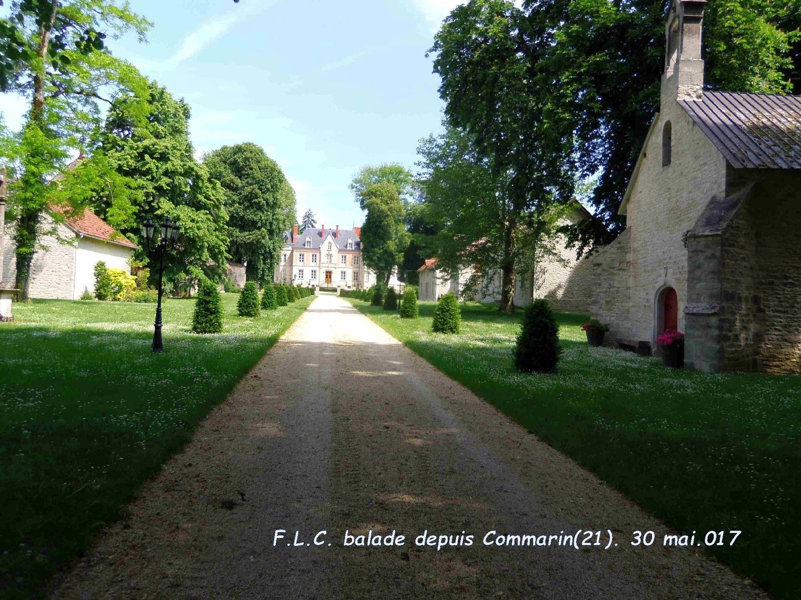 La grande allée de plus d'un km malheureusement mal entretenue face au château de Commarin clôture cette balade devant le Château