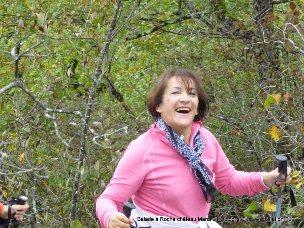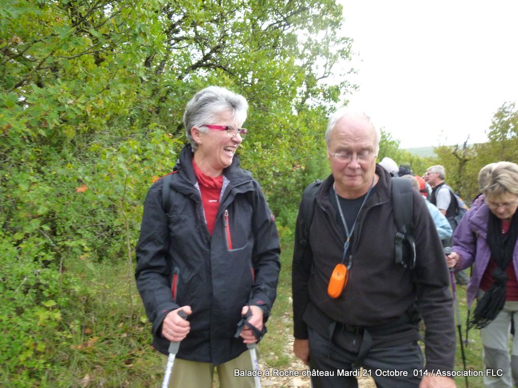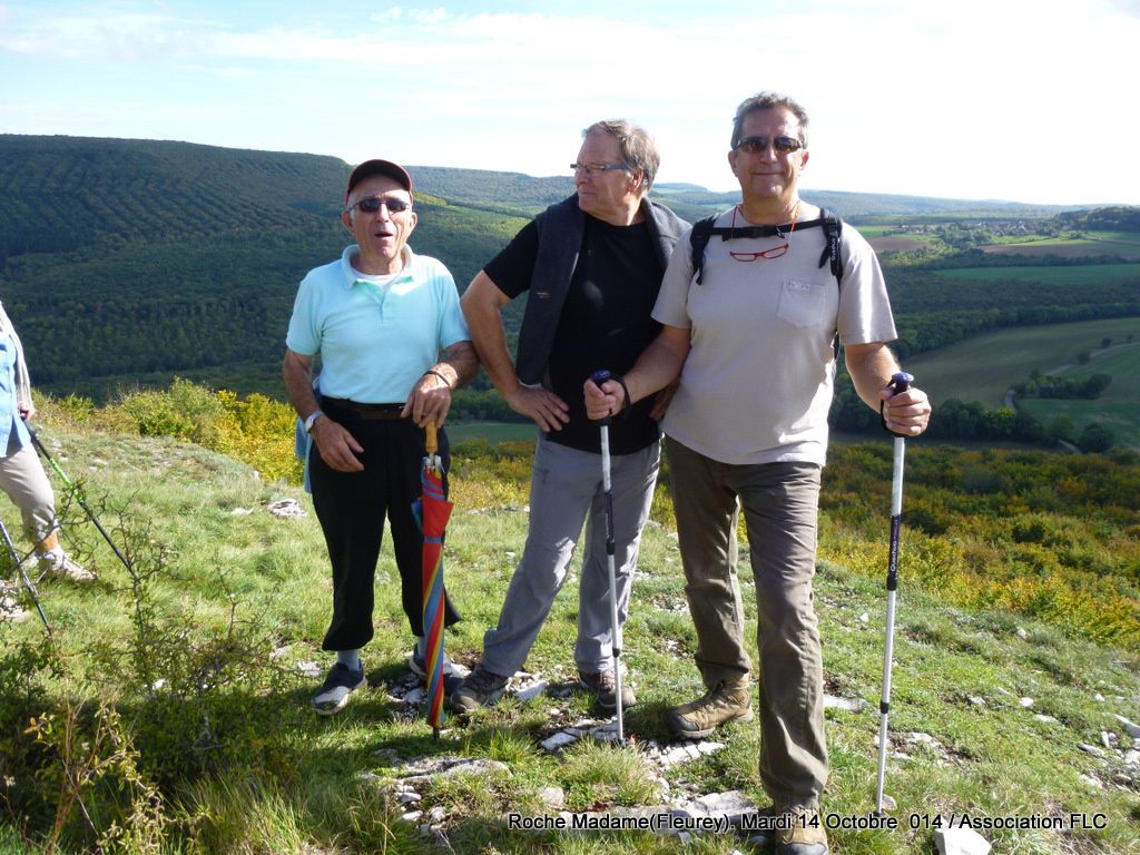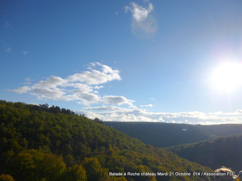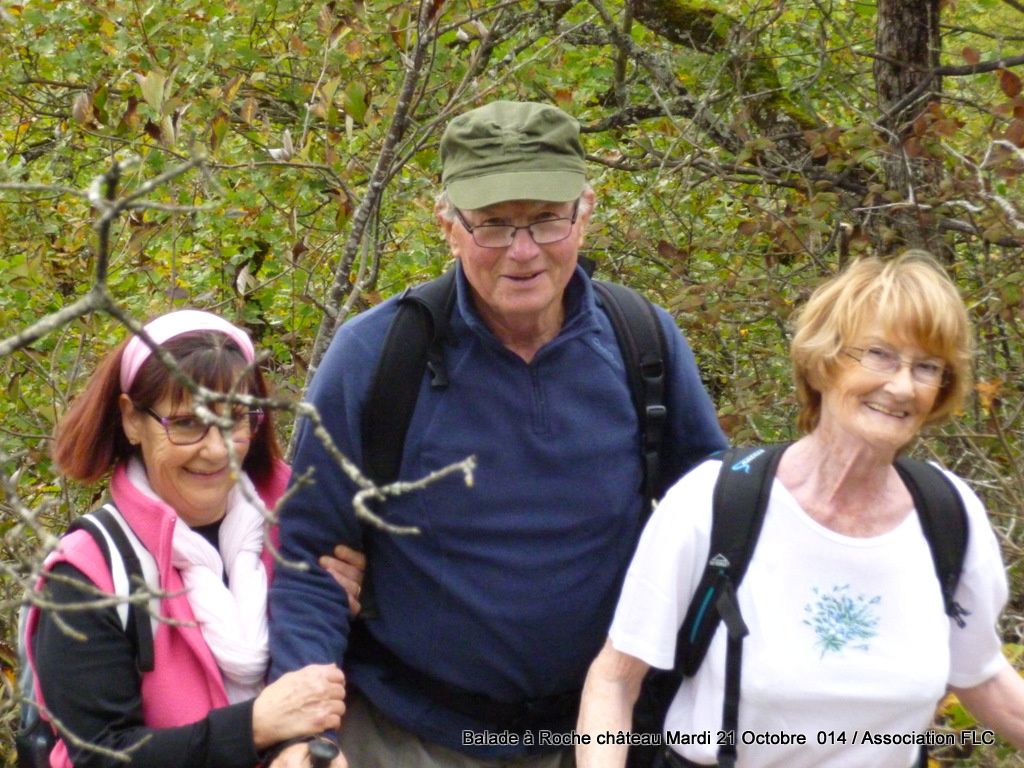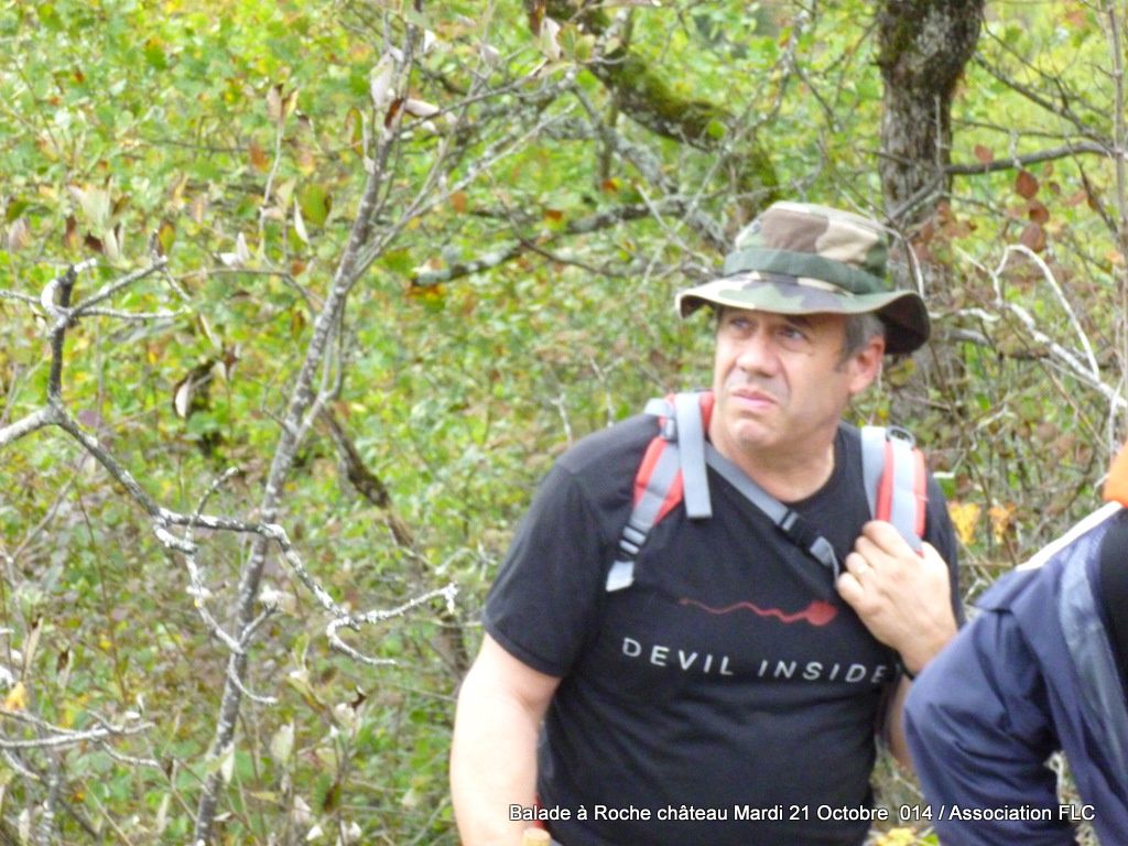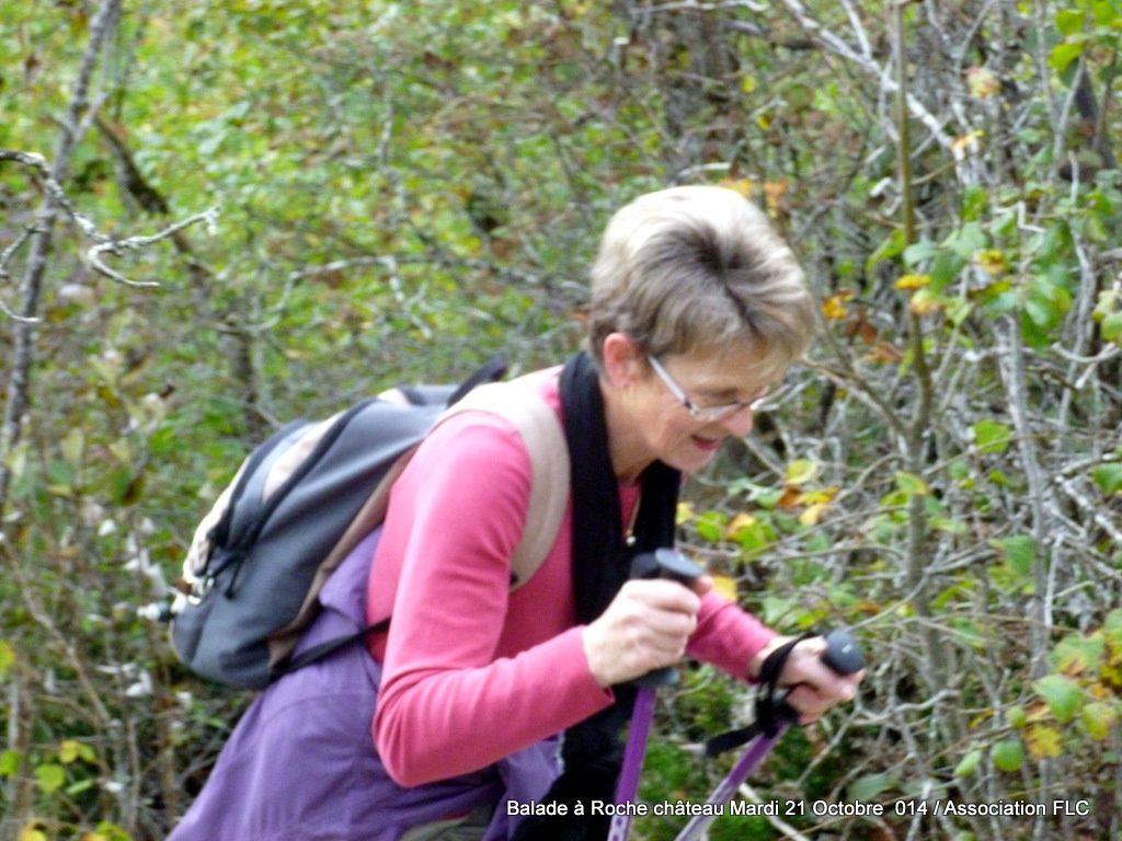 Roche château, première difficulté au dessus d'un ensemble de cavités dans la falaise est avalée sans problème, (et sans bavardages!) par les marcheurs.
